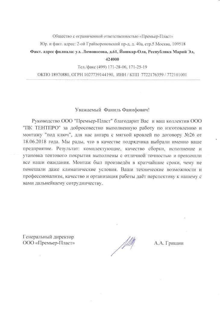 Готовый каркасно-тентовый ангар